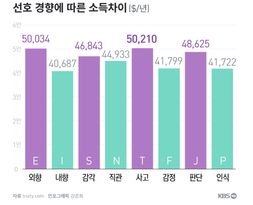 고소득층과 관련되는 일반적인 MBTI 유형