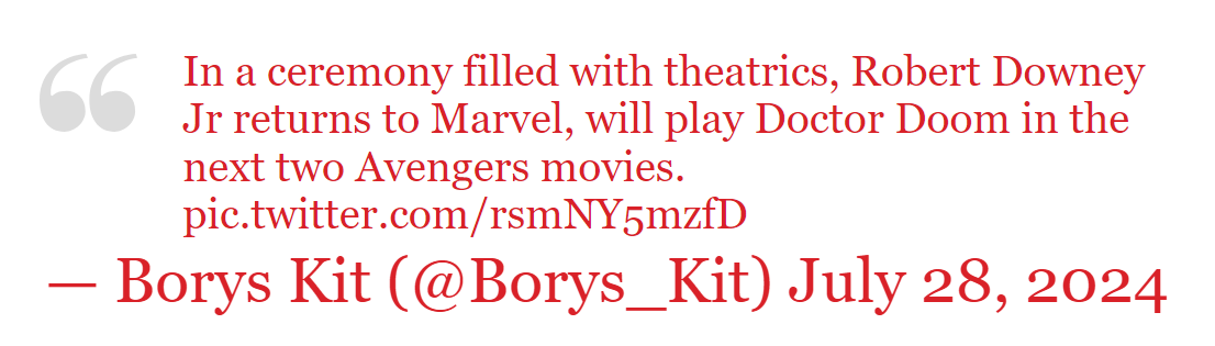 - MCU에서 토니 스타크(아이언맨)가 사망한 후, 다른 평행 우주에서의 토니 스타크가 닥터 둠으로 등장하는 이야기가 전개될 가능성이 있습니다.