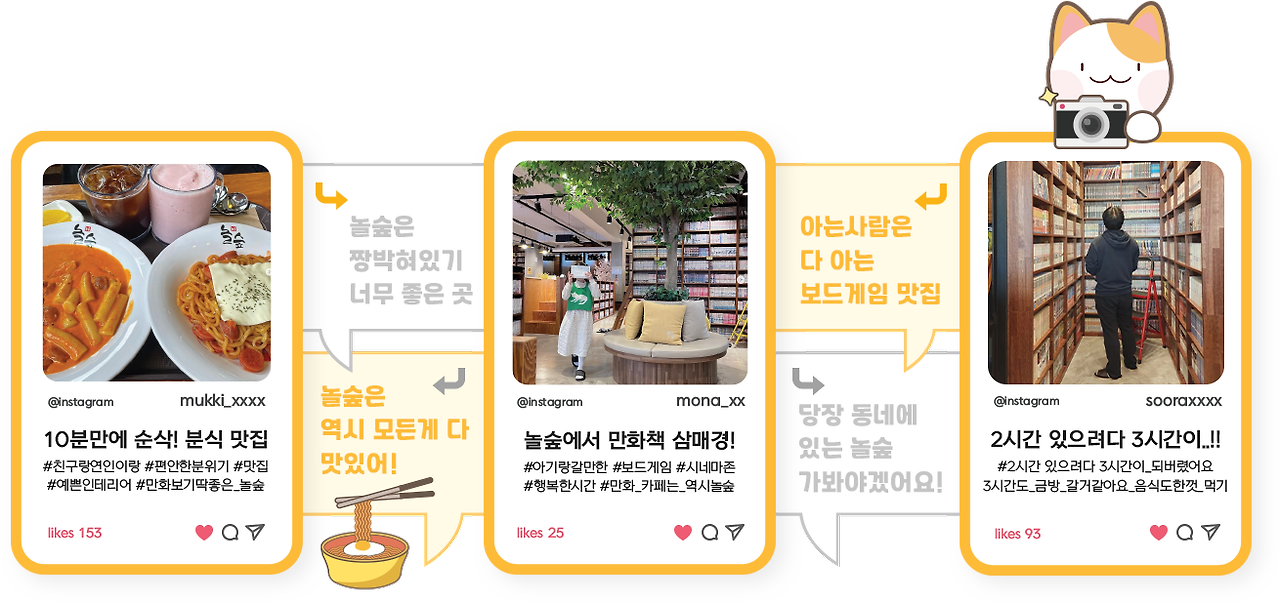 - 친절한 서비스: 놀숲의 직원들은 친절하고 세심한 서비스로 손님들을 맞이합니다. 궁금한 점이 있거나 도움이 필요하면 언제든지 직원들에게 문의할 수 있습니다.