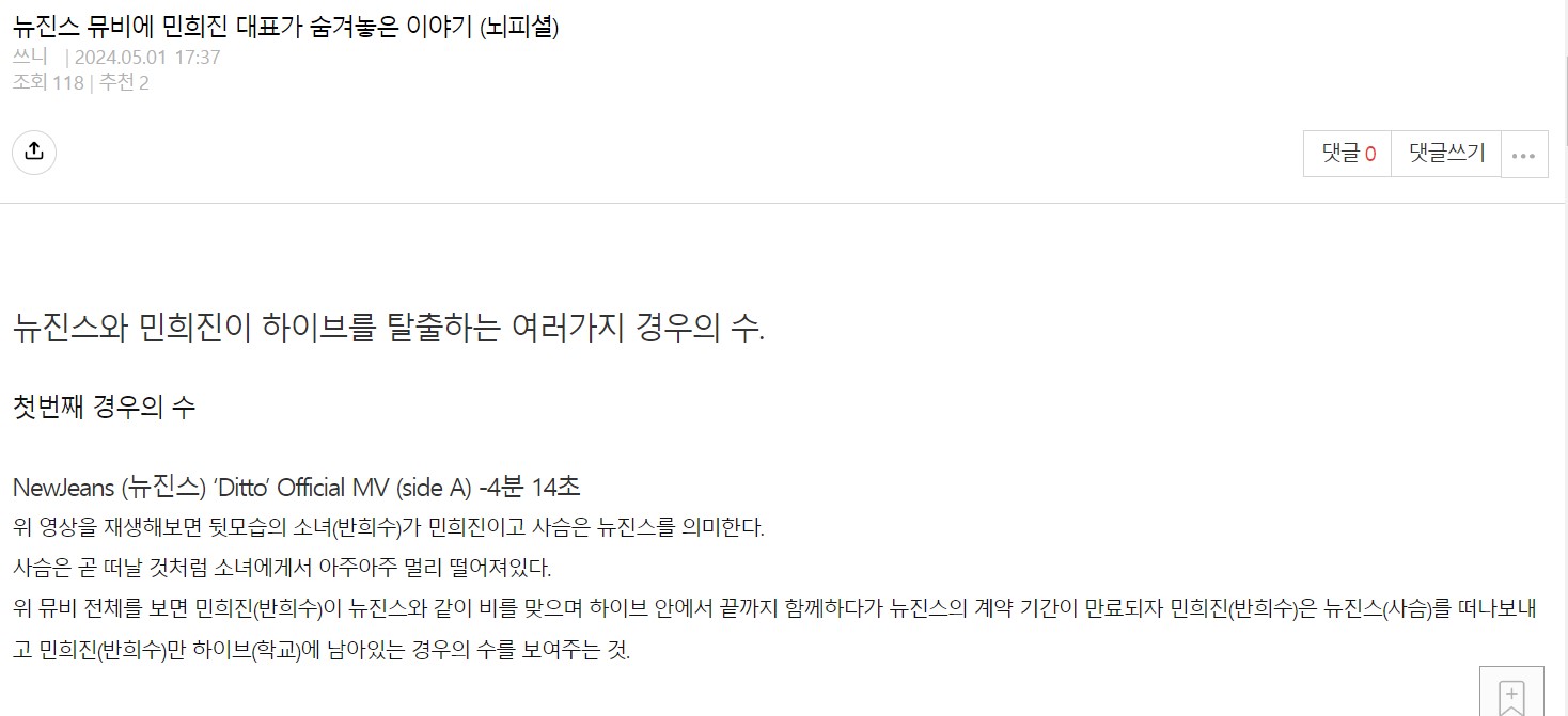 뉴진스 뮤비에 민희진 대표가 숨겨놓은 이야기(뇌피셜) from 네이트 판