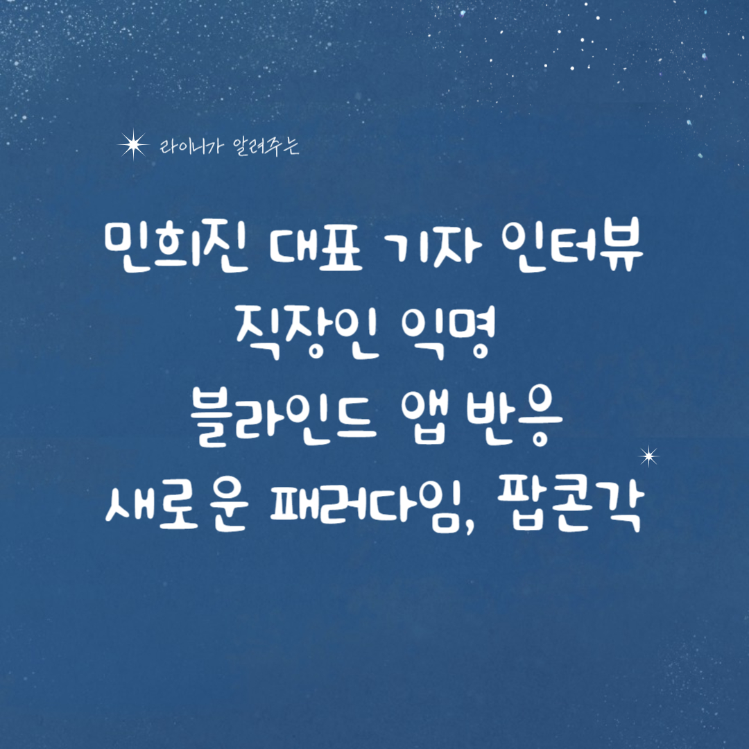 블라인드는 2014년 출시된 익명 직장인 커뮤니티 앱입니다. 2024년 현재 한국을 포함한 전 세계 1000만 명 이상의 직장인들이 이용하고 있으며, 특히 한국에서는 대기업 직장인 10명 중 8명이 사용한다는 통계가 있을 정도로 높은 인기를 누리고 있습니다.