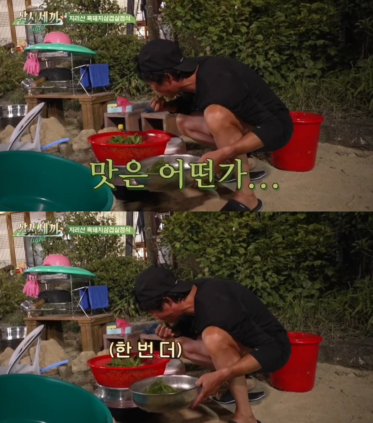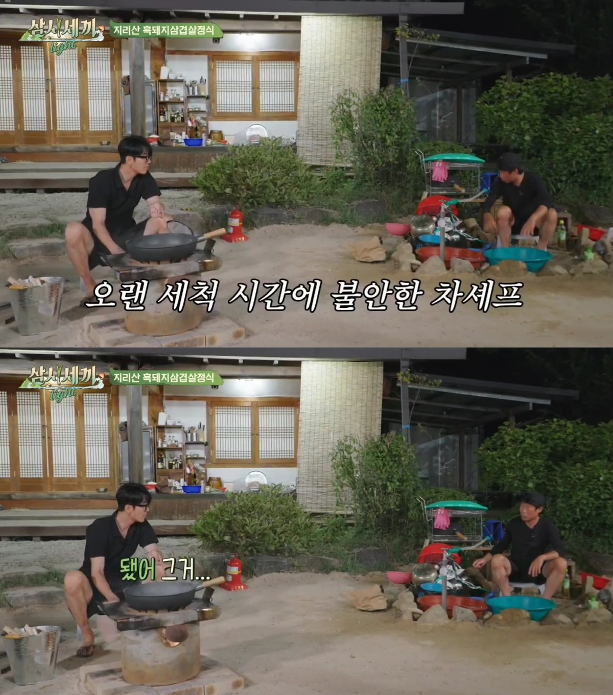 - 이 장면에서 차승원은 유해진이 너무 과도하게 식초를 넣고 세척하는 모습에 불안한 기색을 보이며 "됐어. 그거"라고 조언합니다.