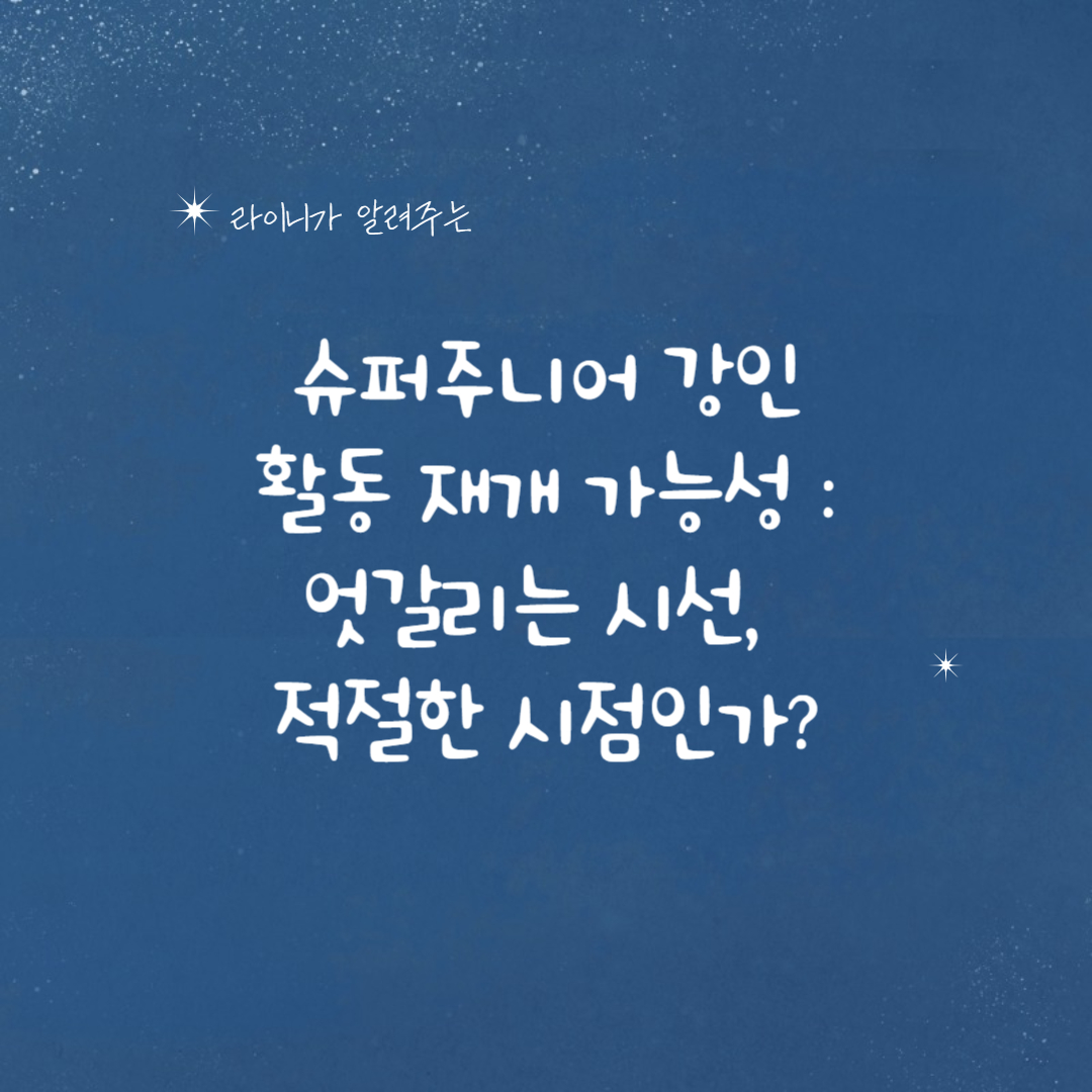 - 대중의 여론: 현재 대중의 여론은 강인 씨의 활동 재개에 대한 반대 의견이 우세합니다. 대중의 여론을 무시하고 활동을 재개하는 것은 오히려 더 큰 논란을 야기할 수 있습니다.
