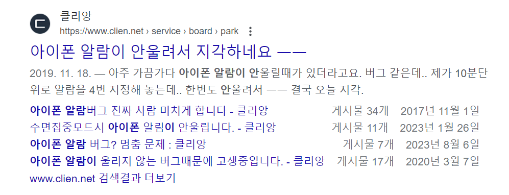 커뮤니티에 올라온 알람 소리가 울리지 않는 사례