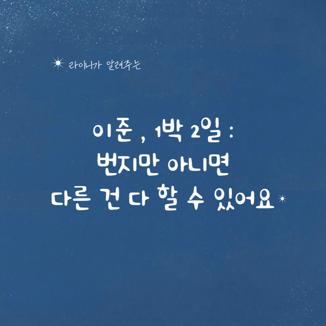 이준의 '1박 2일: 번지만 아니면 뭐든지 다 하겠습니다 시켜만 주십시오'