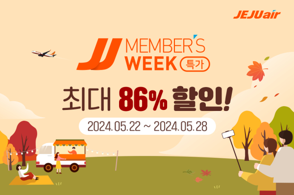 제주항공은 'JJ멤버스위크' 프로모션을 진행한다고 5월 22일 밝혔습니다.