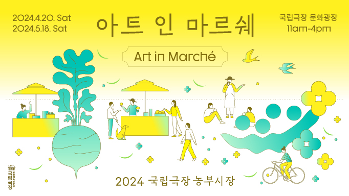 2024년 5월 18일 (토요일), 국립극장 해오름극장 앞 문화광장에서 열리는 국립극장 농부시장 '아트 인 마르쉐'가 4주년을 맞이합니다! 햇살 가득한 5월, 더욱 풍성한 시장과 특별한 이벤트로 여러분을 기다립니다.
