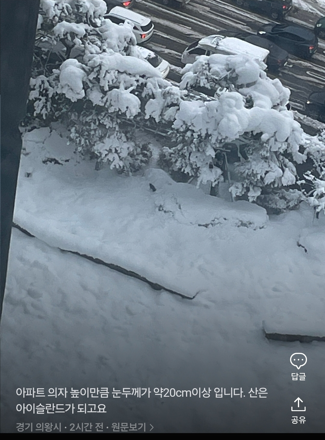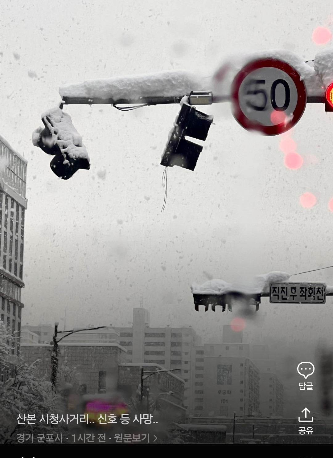- 용인, 군포 등지에서 40cm 이상 쌓였고, 다른 지역들도 20cm 이상의 폭설을 기록했습니다.